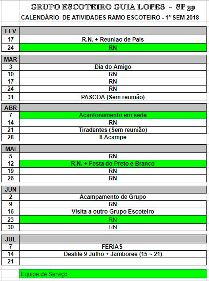 Programação Ramo Escoteiro - 1º Semestre 2018